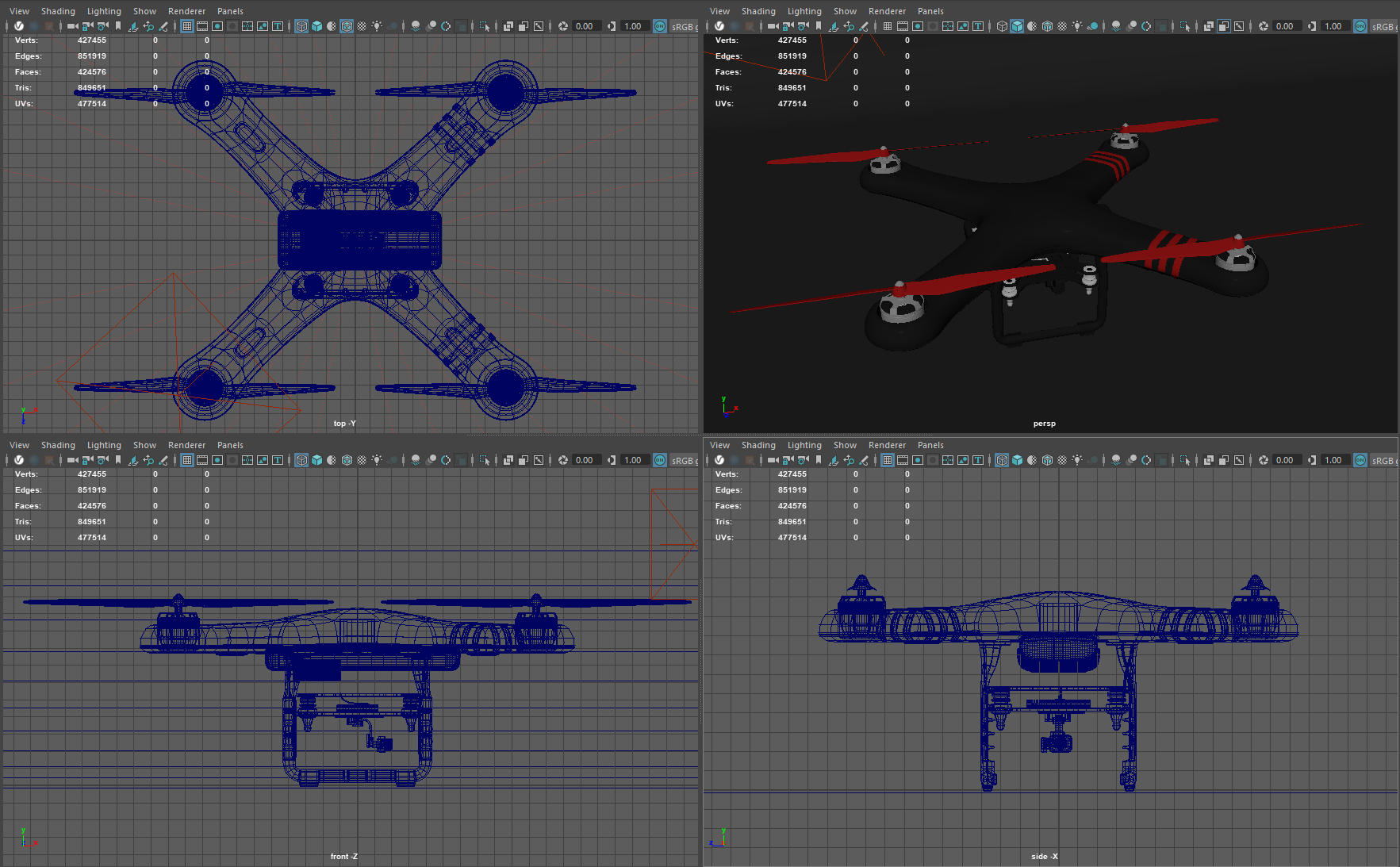 High poly model of a drone.